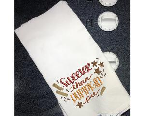 Embroidered 'Sweeter Than Pumpkin Pie' Autumn kitchen towel