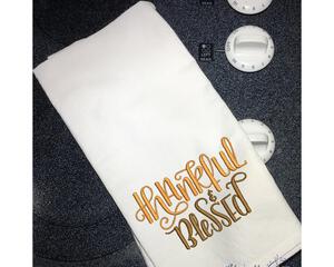 Embroidered 'Thankful & Blessed' Flour sack Towel
